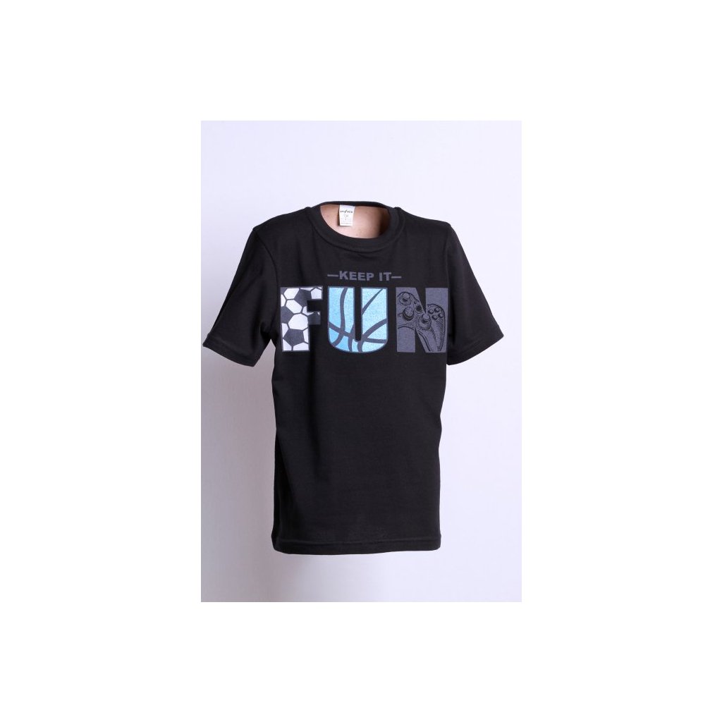 Stylové chlapecké tričko FUN s krátkým rukávem v černé barvě - dokonalá volba pro každého mladého milovníka zábavy a dobrodružství!