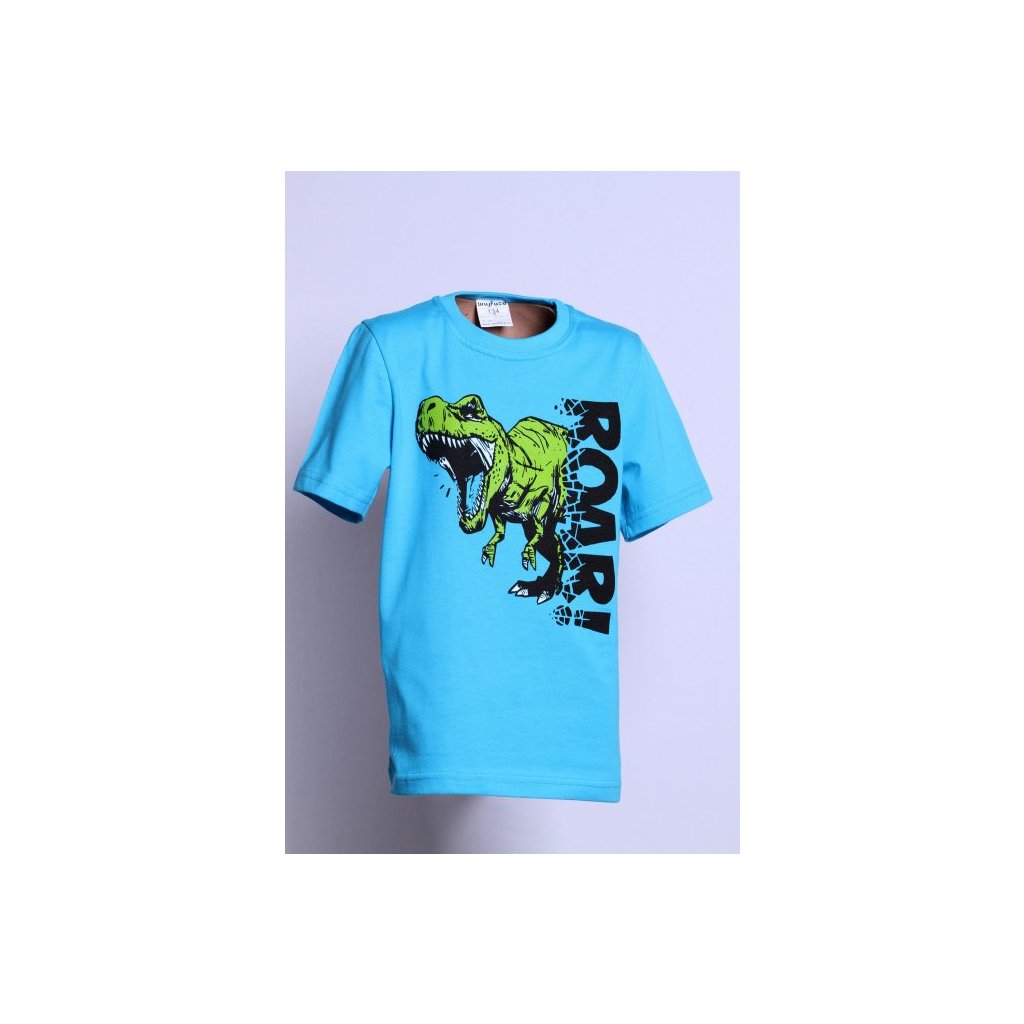 Úžasné chlapecké tričko Roar s krátkým rukávem v tyrkysové barvě - perfektní volba pro každého malého milovníka dinosaurů!