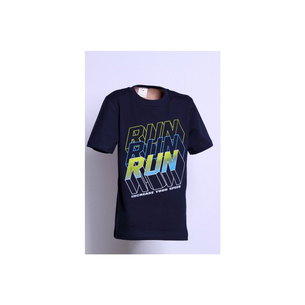 Dynamické chlapecké tričko RUN s krátkým rukávem v tmavě modré barvě - ideální volba pro každého mladého běžce a sportovního nadšence!