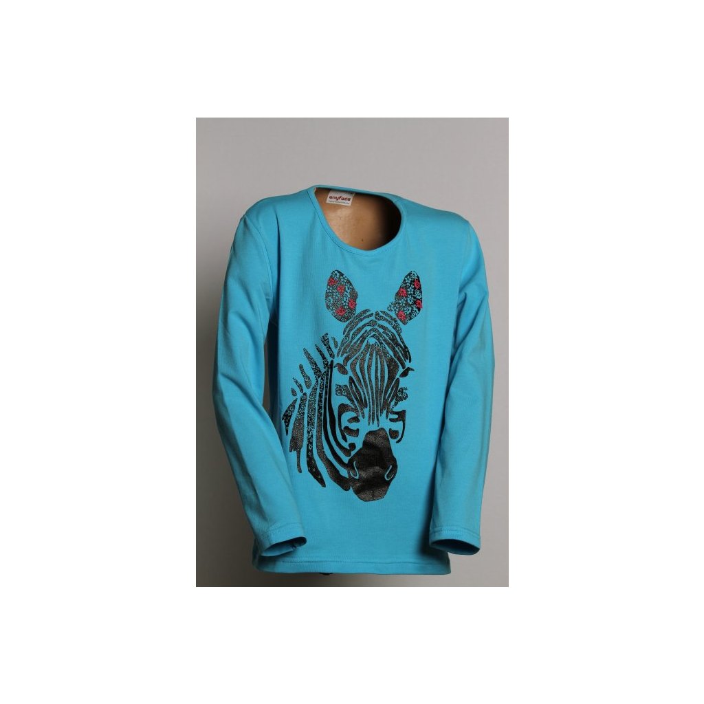 Dívčí tričko dlouhý rukáv ZEBRA tyrkysová
