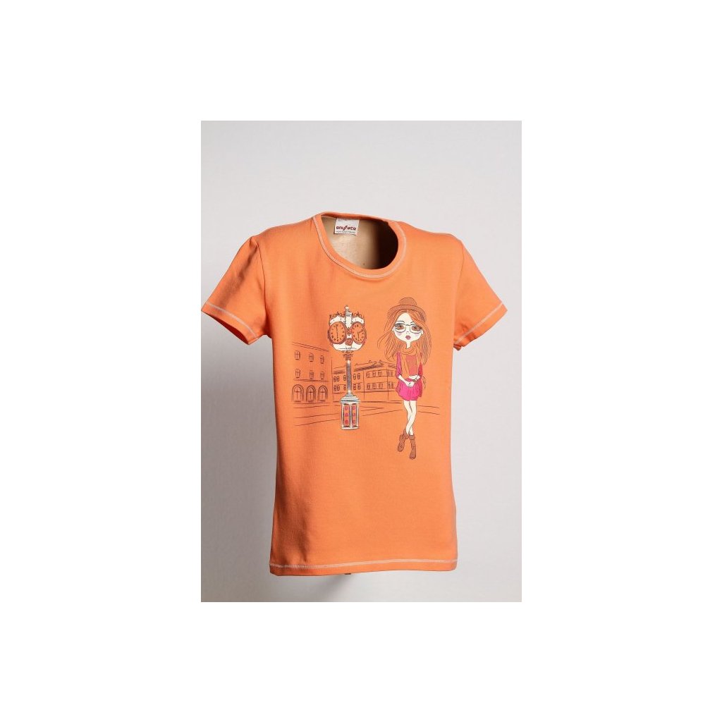 Dívčí tričko krátký rukáv CLOCK meruňková