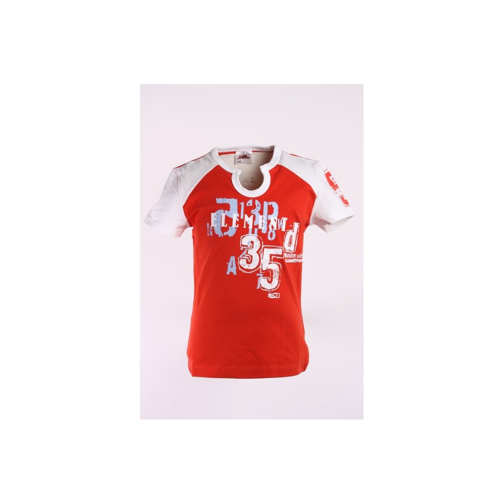 Tričko dívčí s krátkým rukávem menšího střihu v cihlové barvě z příjemného pružného materiálu s elastanem.Na předním díle a levém rukávu sportovní tisk.Průkrčník mírně prostřižen a obšit.Na předním díle všité sedýlko v barvě rukávu a tisku.